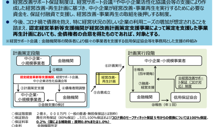 中小企業者の経営改善や事業再生を後押しするための保証制度である「経営改善サポート保証制度」に加え、特に債務超過に苦慮する中小企業者への金融支援である...