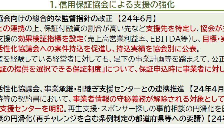 経済産業省、金融庁、財務省は、2024年3月に7月以降の再生支援の総合対策について、発表しました。 その概要としては、保証付融資の増大や 再生支援...