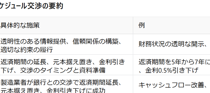 「債権者との関係管理とリスケジュール交渉」についての具体的で分かりやすい説明 中小企業が返済に苦しむ状況下では、債権者との関係を適切に管理し、返済...