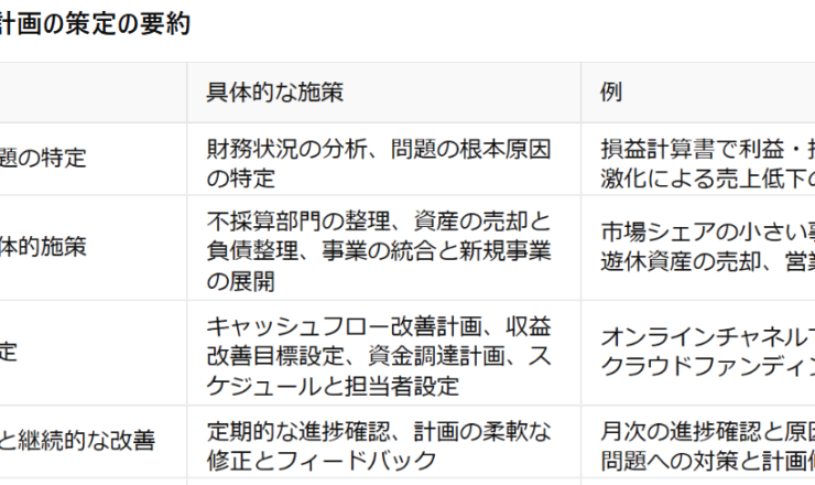 「事業再編と再生計画の策定」について 事業再編と再生計画の策定は、企業が苦境から抜け出し、持続可能な成長を実現するための重要なプロセスです。特に、返...